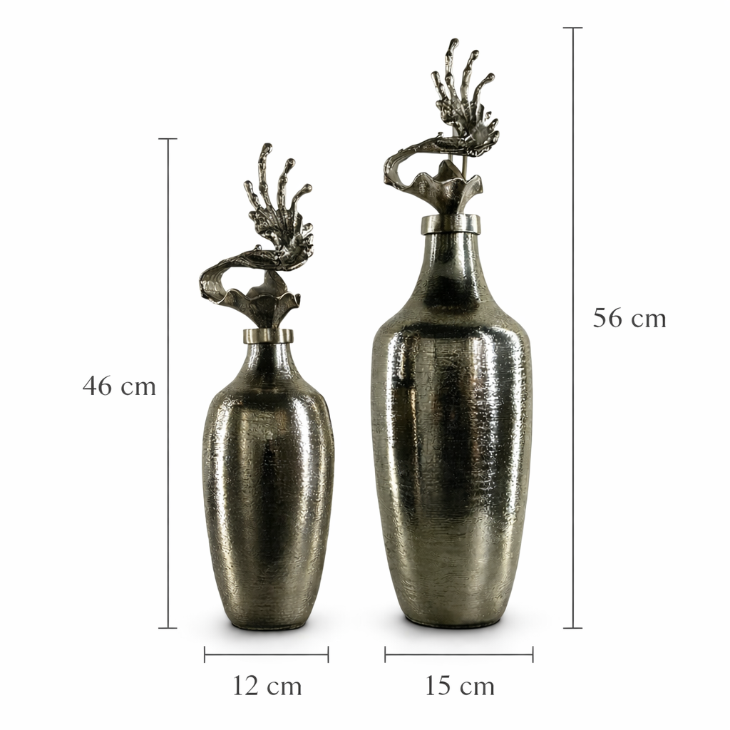 Şıklığı ve modern tasarımı bir araya getiren 2’li cam metal karışımı dekoratif vazo seti, yaşam alanlarınıza zarif bir dokunuş katmak için tasarlanmıştır. Estetik formu, dikkat çekici metalik yüzeyi ve sanatsal üst detayları ile salon, antre, konsol, yemek masası ve ofis dekorasyonunda göz alıcı bir tamamlayıcıdır.