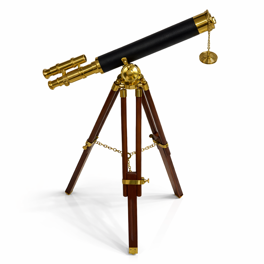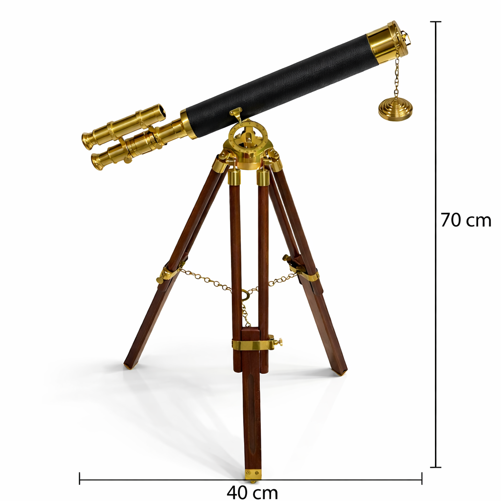 Klasik denizcilik tarzından ilham alan bu dekoratif ahşap teleskop, yaşam alanlarınıza nostaljik ve şık bir atmosfer kazandırır. Ahşap tripod ayakları, gerçek pirinç detayları ve zarif tasarımı sayesinde salon, çalışma odası, ofis, otel, kütüphane veya vitrin dekorasyonunda dikkat çeken özel bir aksesuar olarak öne çıkar.