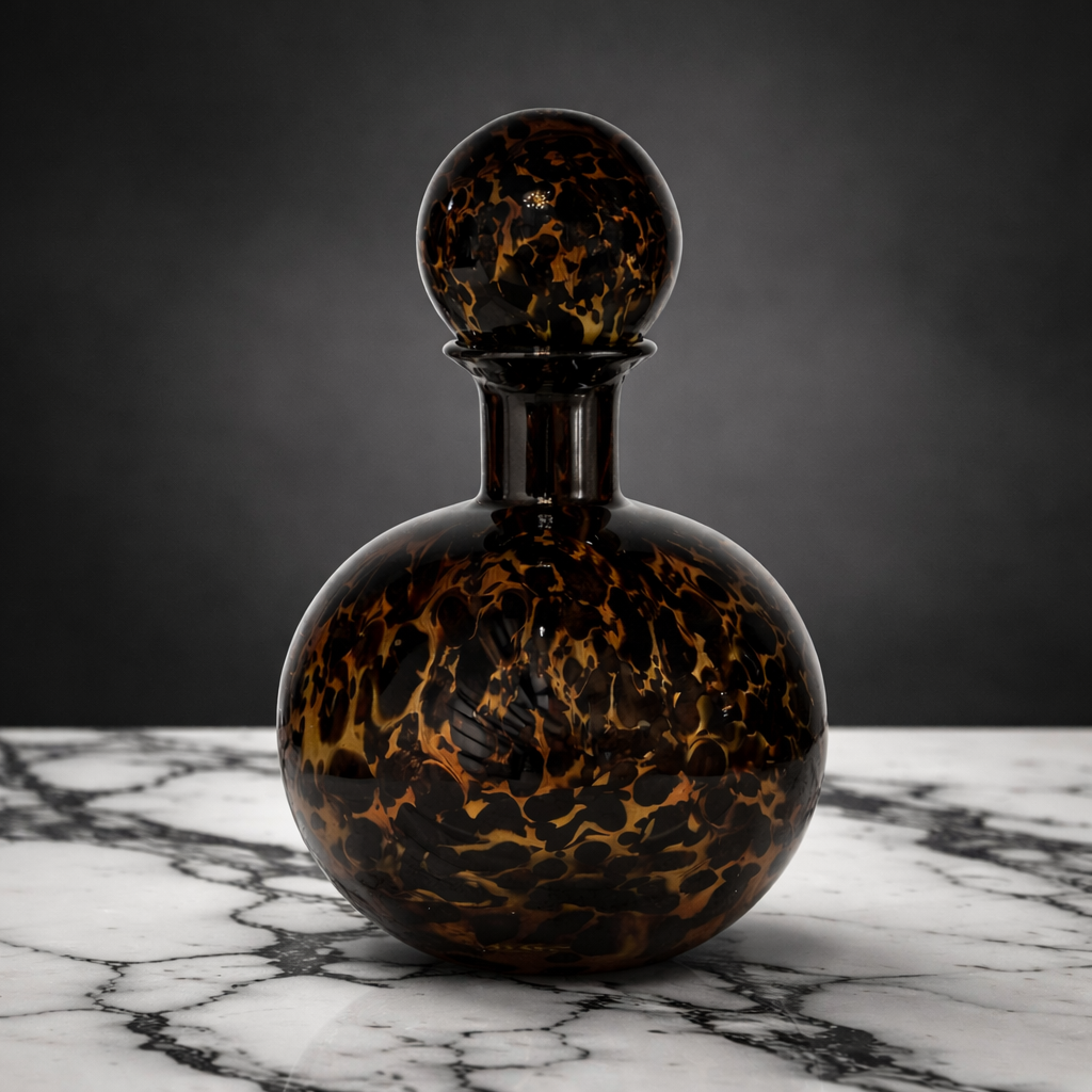Bu göz alıcı kaplumbağa kabuğu desenli cam vazo ile yaşam alanlarınıza zarafet katın. Modern şıklık ile vintage dokunuşu bir araya getiren bu dekoratif cam şişe, siyah ve amber mermer görünümlü deseniyle dikkat çeker. Salon, konsol, sehpa, raf ve ofis dekorasyonunda rahatlıkla kullanılabilecek lüks bir dekoratif objedir.