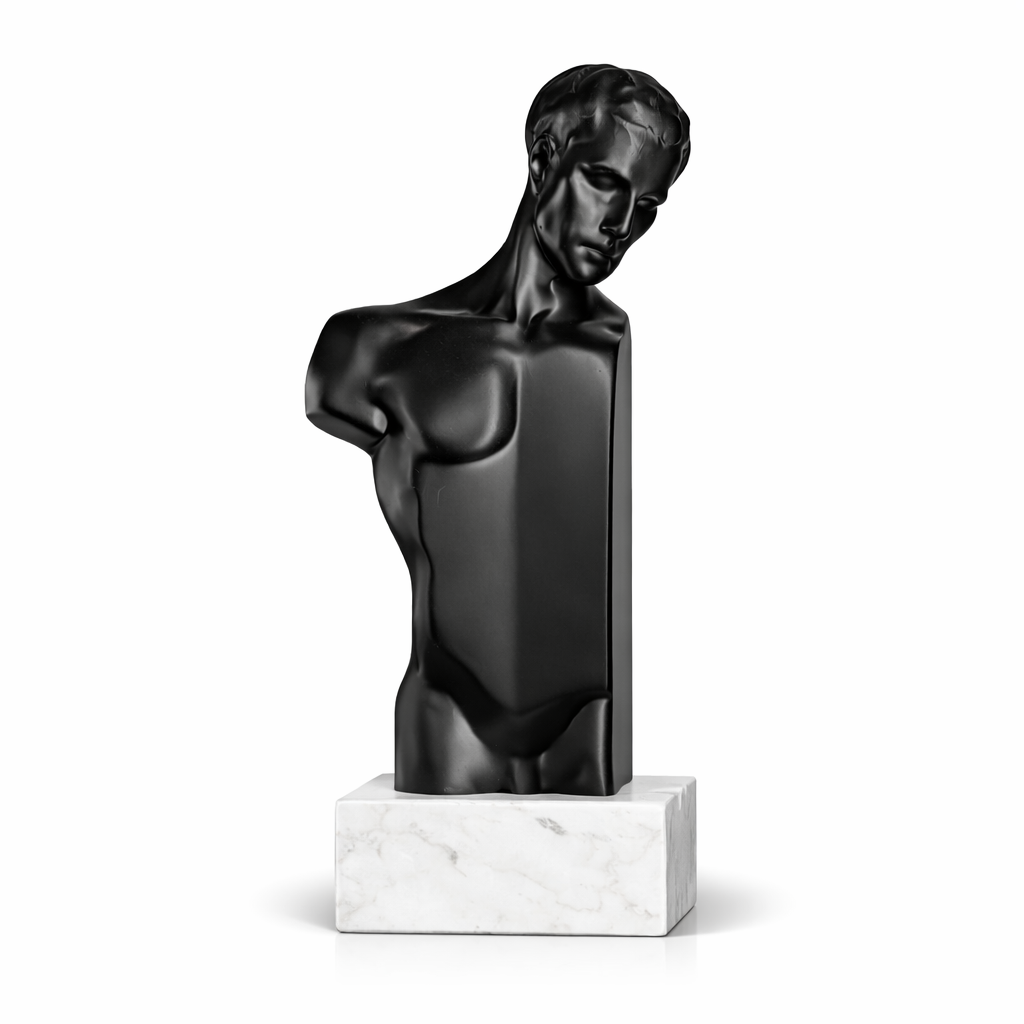 Bu modern büst kitap tutucu, klasik heykel sanatını minimalist tasarımla birleştiren etkileyici bir dekoratif objedir. Antik Yunan ve Roma heykellerinden ilham alan bu tasarım, geometrik kesilmiş erkek torso formu sayesinde hem sanat eseri hem de fonksiyonel bir kitap tutucu olarak kullanılabilir.