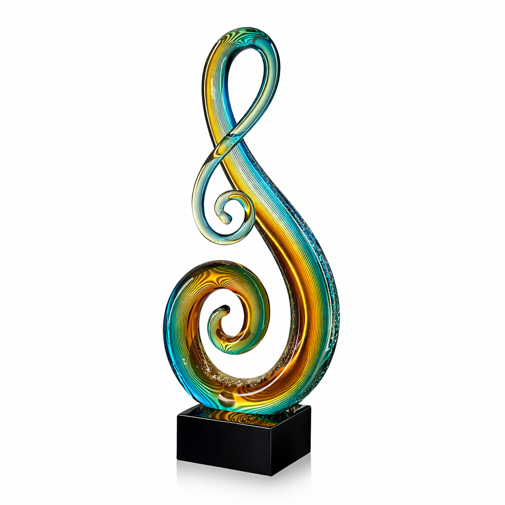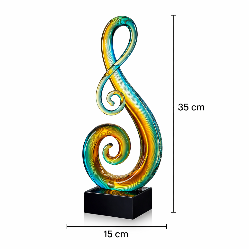 Cam üfleme sanatıyla müziği bir araya getiren kristal sol anahtarı, bulunduğu ortama modern bir estetik ve güçlü bir karakter kazandırır. El işçiliğini andıran akışkan formu, ışıkla buluştuğunda ortaya çıkan derin renk geçişleriyle adeta yaşayan bir sanat eserine dönüşür.