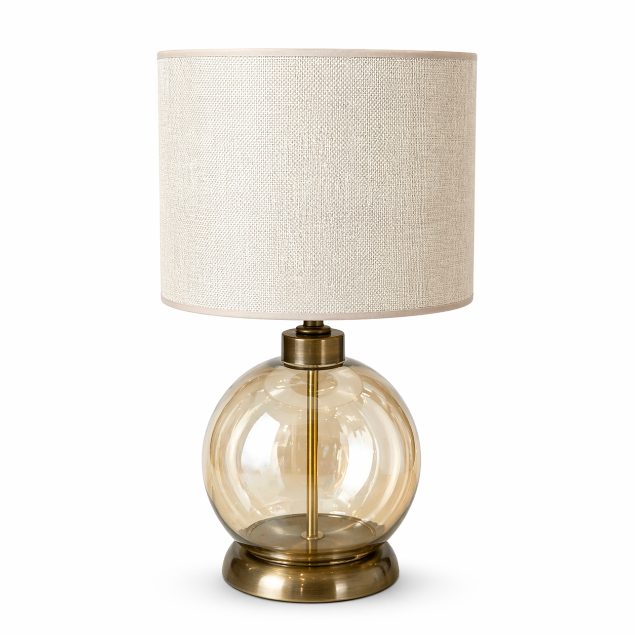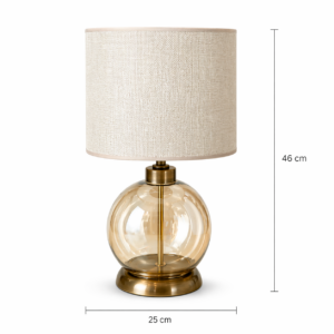 Modern ve zarif tasarımıyla öne çıkan cam üfleme abajur, yaşam alanlarınıza sıcak ve şık bir atmosfer kazandırır. El işçiliği detaylarıyla hazırlanan cam gövdesi, dekoratif metal tabanı ve kumaş şapkası sayesinde hem klasik hem modern dekorasyon stilleriyle uyum sağlar. Salon, yatak odası, çalışma odası, konsol üzeri veya komodin kullanımı için ideal bir aydınlatma ürünüdür.