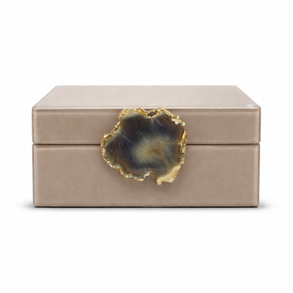 Yumuşak tonlara sahip cam gövdesi ve altın detaylı doğal taş (agat) görünümlü kulpu ile modern ve lüks tasarımı bir araya getirir. Minimalist formu sayesinde hem kullanışlı hem de dekoratif bir üründür.