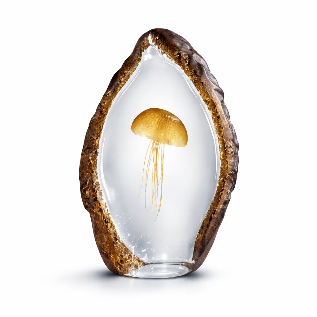 Organik formdan ilham alan Dorian, cam sanatını modern bir yorumla buluşturan heykelsi bir tasarımdır. Şeffaf gövde içinde yer alan zarif detaylar ve altın tonlu dokular, ışıkla etkileşime girerek derinlik hissi yaratır.