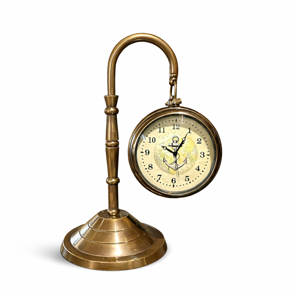 Antik pirinç görünümlü metal gövdesi ve askılı formu sayesinde bu saat hem vintage dekorasyon hem de klasik ofis tasarımları için mükemmel bir tamamlayıcıdır.