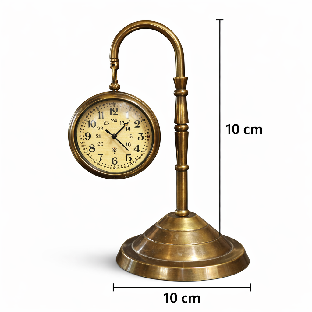 Bu çift taraflı vintage masa saati, 19. yüzyıl Avrupa tren istasyonlarında, otellerde ve büyük kamu binalarında kullanılan klasik istasyon saatlerinden ilham alınarak tasarlanmıştır. Saatin en dikkat çekici özelliği ön ve arka olmak üzere iki tarafında da çalışan saat mekanizması bulunmasıdır.