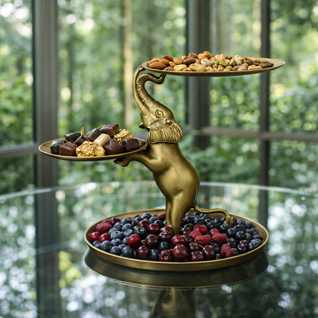 Özel tasarım fil figürü, gücü ve bereketi simgelerken; üç katlı yapısı sayesinde ikramlarınızı estetik bir şekilde sunmanıza olanak tanır. Misafirlerinize sunum yaparken fark yaratmak isteyenler için ideal bir üründür.