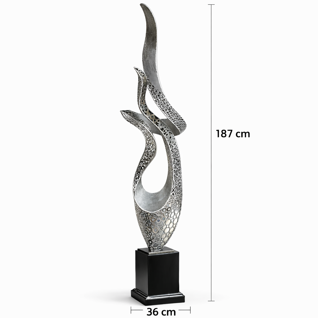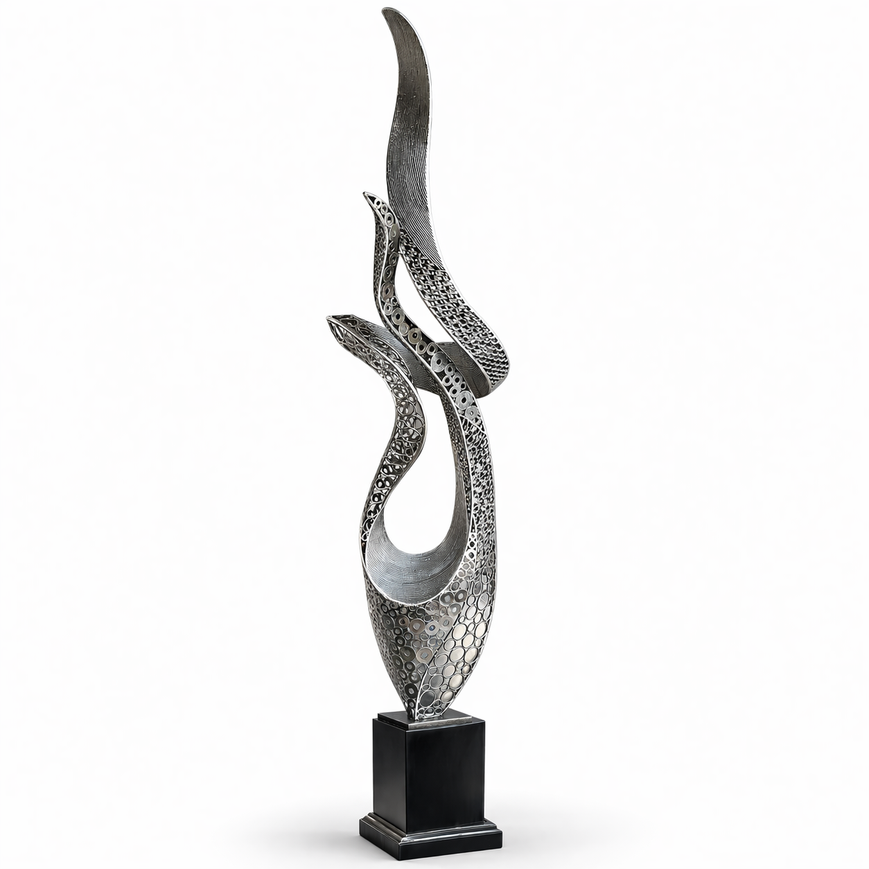 Akışkan formu ve etkileyici yüksekliği ile öne çıkan bu modern metal heykel, sanatsal tasarımıyla yaşam alanlarınıza güçlü bir estetik kazandırır. Soyut çizgileri ve dinamik yapısı sayesinde bulunduğu ortamda adeta bir sanat galerisi etkisi yaratır.