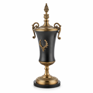 40.5 cm yüksekliğinde pirinç döküm aslan ayaklı şamdan, klasik Avrupa tasarımından ilham alan gösterişli bir dekoratif aksesuardır. Yüksek kaliteli pirinç döküm gövdesi, siyah sütun detayı ve dekoratif işlemeleri ile dikkat çeker. Alt kısmındaki aslan pençesi ayaklar, ürüne güçlü ve klasik bir görünüm kazandırır. Yemek masası, konsol, şömine üstü veya klasik dekorasyonlarda şık bir tamamlayıcıdır.