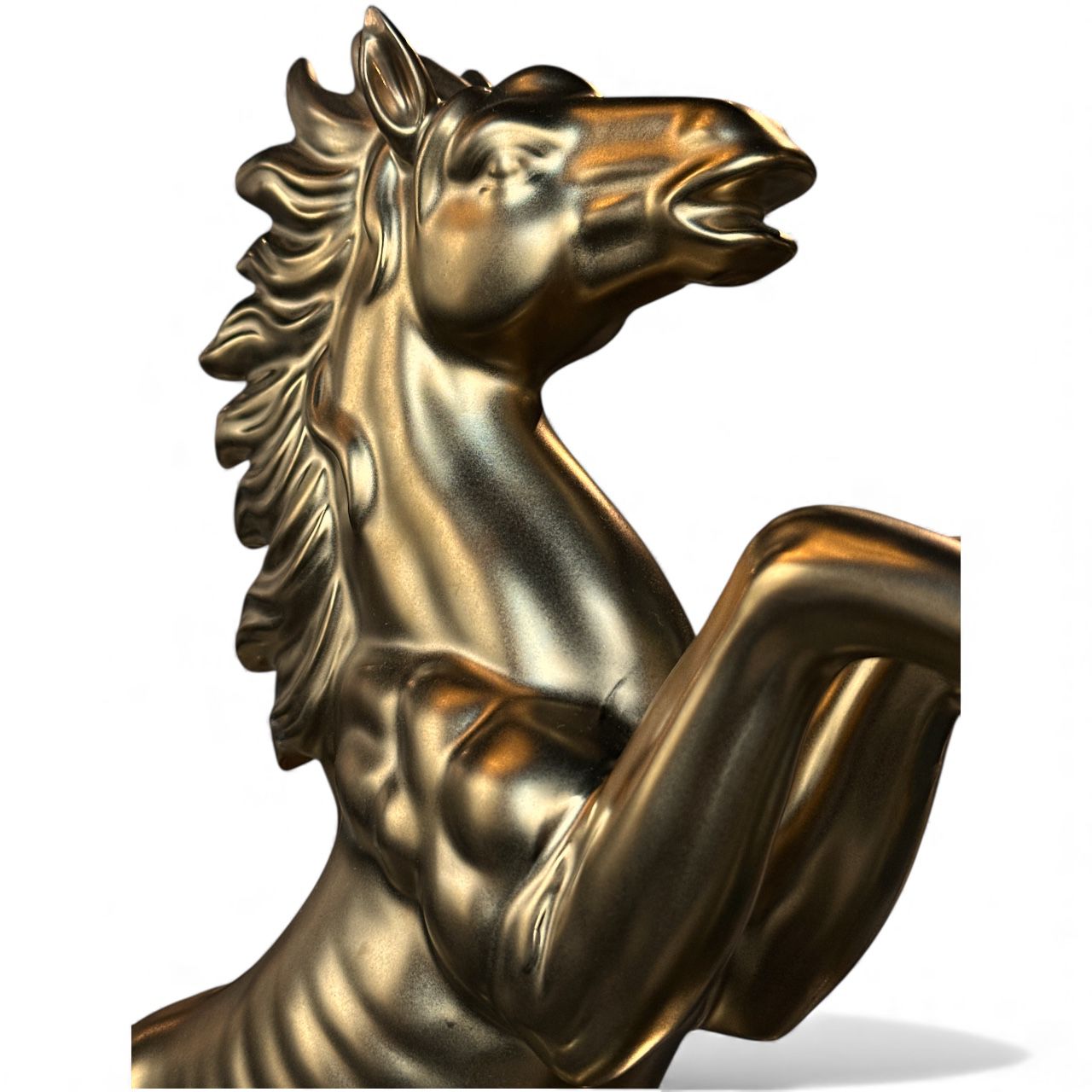 Parlak seramik yüzeyi ve el işçiliği detaylarıyla öne çıkan altın at obje, hem modern hem de klasik dekorasyon tarzlarıyla mükemmel uyum sağlar.