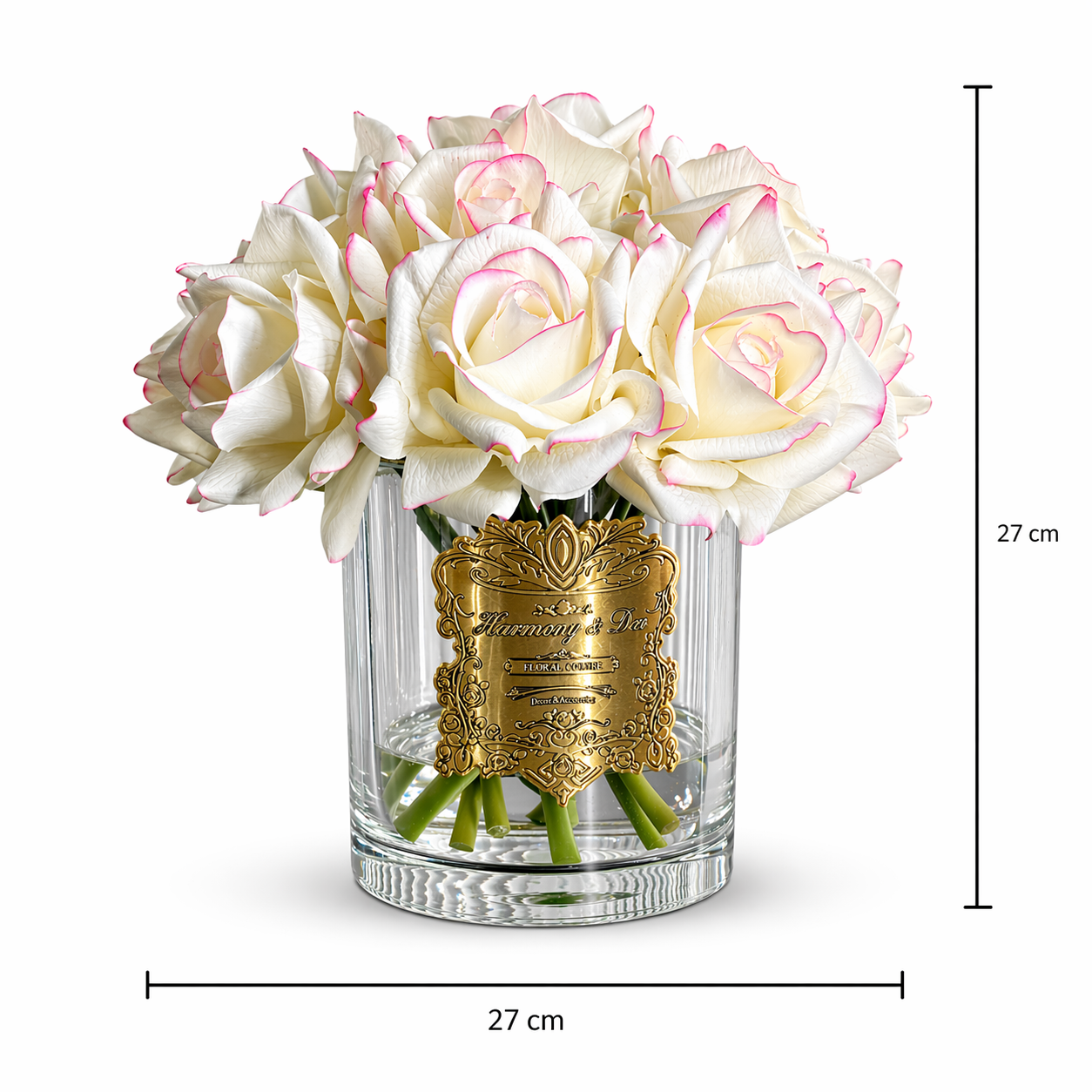 Harmony And Deo markasının özel tasarımı olan 15 adet ıslak dokulu somon güller, zarafeti ve lüks görünümü bir araya getirerek yaşam alanlarınıza şıklık katıyor. Gerçekçi dokusu sayesinde doğal çiçek görünümü sunan bu dekoratif aranjman, siyah parfüm şişesi tasarımıyla modern ve dikkat çekici bir dekor ürünüdür.