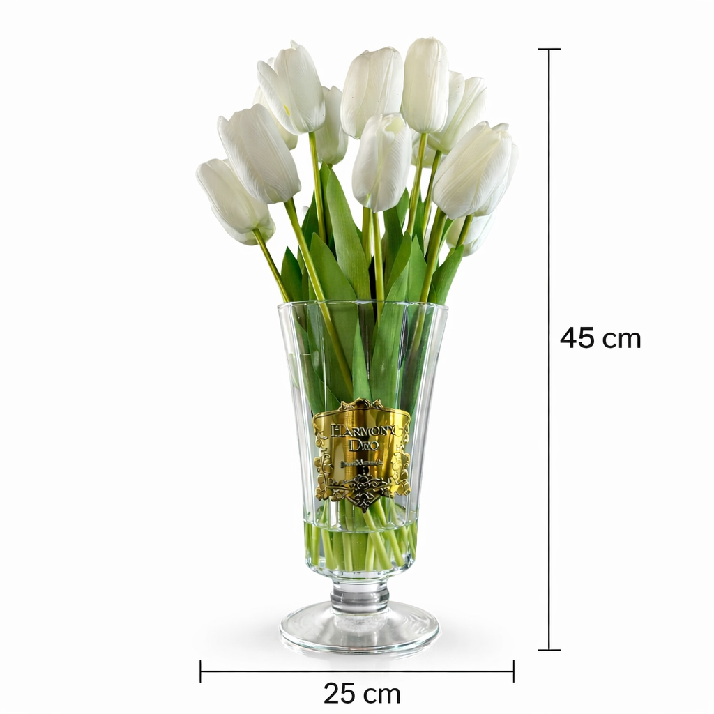 Şeffaf cam vazo içerisinde yer alan ıslak laleler, ortama sıcaklık ve doğallık kazandırır. Uzun süre kalıcı kokusu sayesinde evinizde ferah, davetkar ve huzurlu bir atmosfer oluşturur.