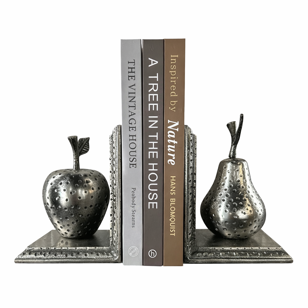 Bu elma ve armut figürlü dekoratif metal kitap tutucu, mutfak ve ev dekorasyonuna sıcak ve doğal bir dokunuş kazandırmak için tasarlanmıştır. Vintage metal dokusu ve detaylı meyve figürleri sayesinde hem rustik hem de country tarzı dekorasyonlarla mükemmel uyum sağlar.
