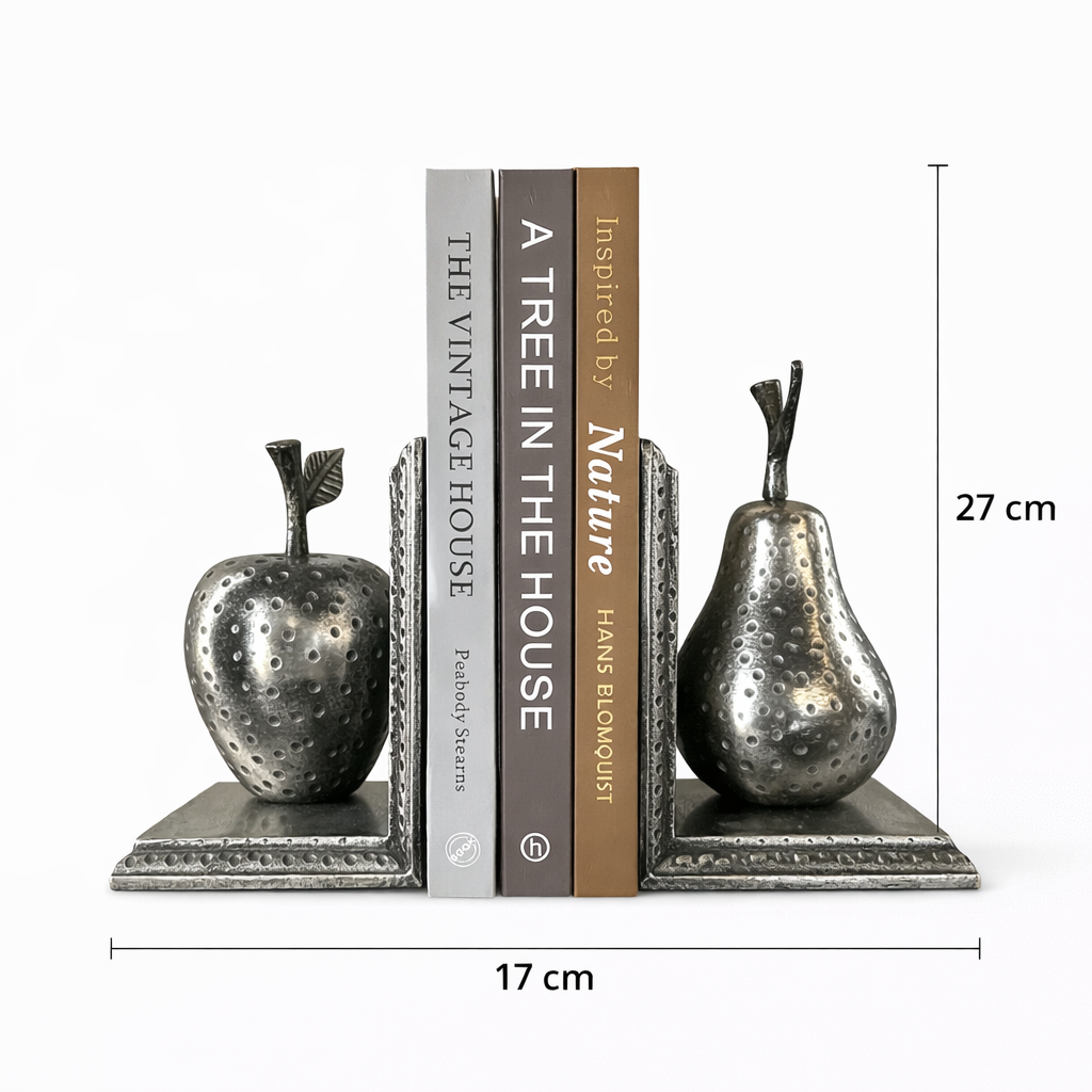Meyve figürleri dekorasyonda genellikle bolluk, bereket ve misafirperverliğin sembolü olarak kullanılır. Bu nedenle sadece bir kitap tutucu değil, aynı zamanda anlamlı bir dekoratif obje olarak öne çıkar.