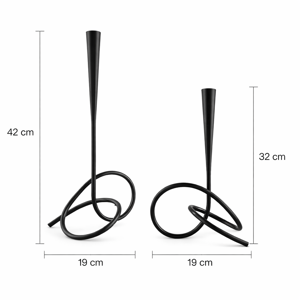Modern çizgileri ve dikkat çekici tasarımıyla öne çıkan ikili metal siyah şamdan seti, yaşam alanlarınıza güçlü ve estetik bir dokunuş kazandırır. Kıvrımlı gövde formu, mat siyah görünümü ve minimal detayları sayesinde salon, yemek odası, antre, konsol, dresuar, sehpa ve masa üstlerinde dekoratif aksesuar olarak kullanılabilir. Modern, endüstriyel, minimalist ve çağdaş dekorasyon tarzlarına uyum sağlayan özel bir tamamlayıcıdır.