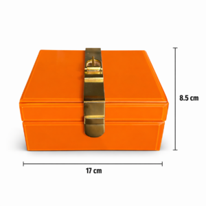 Şıklığı ve zarafeti bir araya getiren kemer detaylı turuncu cam kutu, dekoratif tasarımı ve fonksiyonel kullanımıyla yaşam alanlarınıza estetik bir dokunuş katar. Canlı turuncu rengi ve gold toka detayı sayesinde modern, lüks ve dikkat çekici bir görünüm sunar.