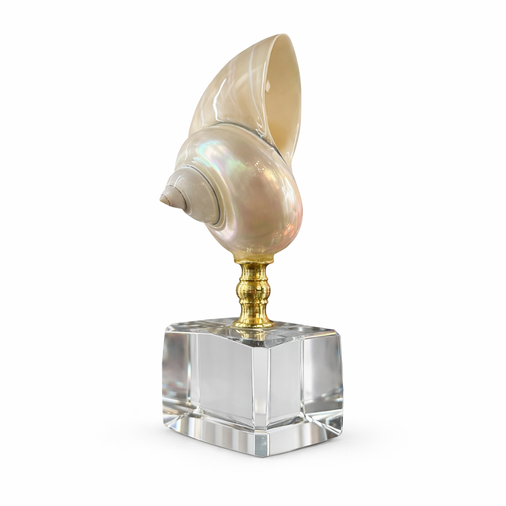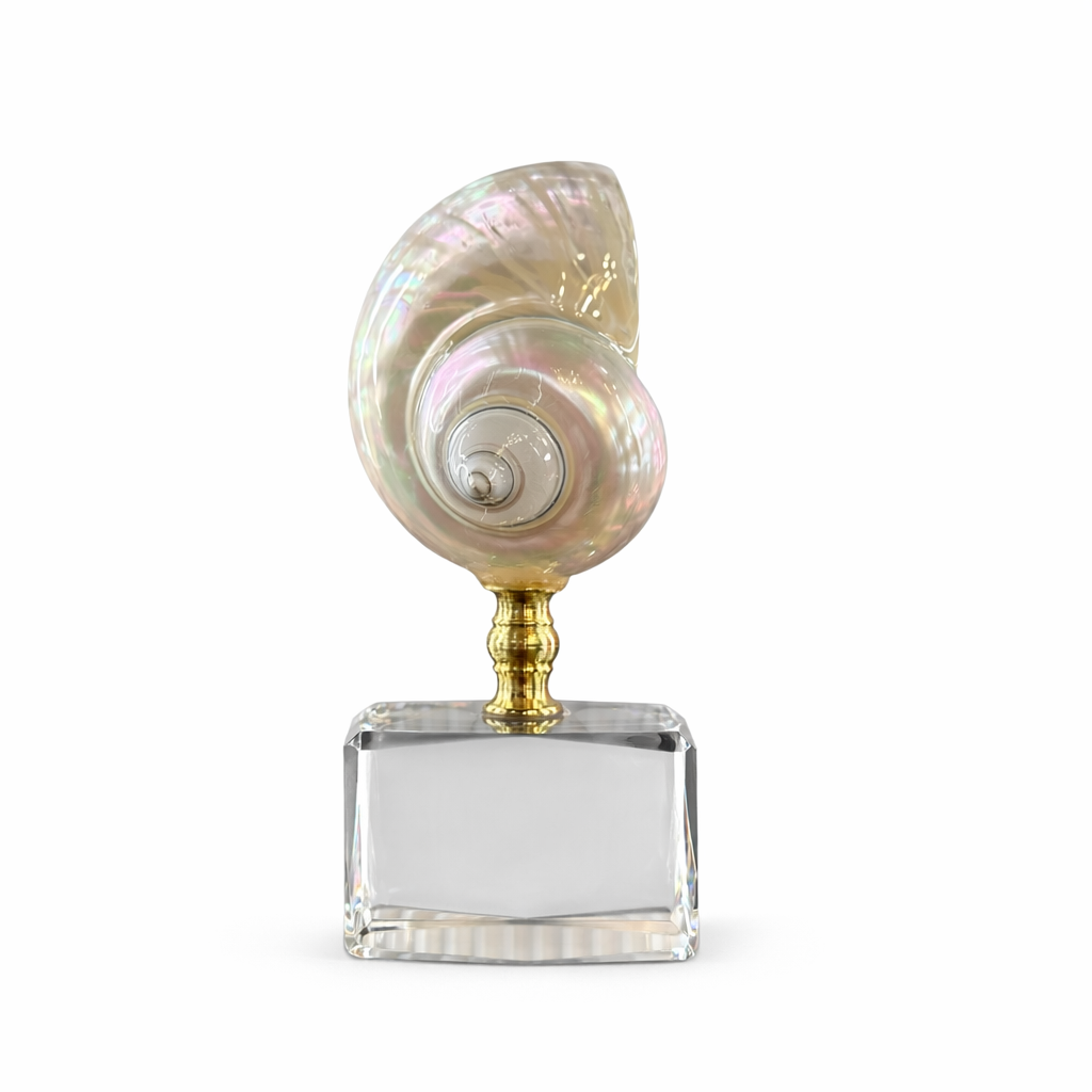 Üst kısmında bulunan doğal Burgos deniz kabuğu, sedefli parlak yüzeyi ve benzersiz renk geçişleri sayesinde her ürünü özel kılar. Alt bölümdeki kristal kaide ise ürüne zarif, modern ve lüks bir görünüm kazandırır. Deniz temalı dekorasyon, şık salon aksesuarları ve özel tasarım objeler arayanlar için ideal bir tercihtir.