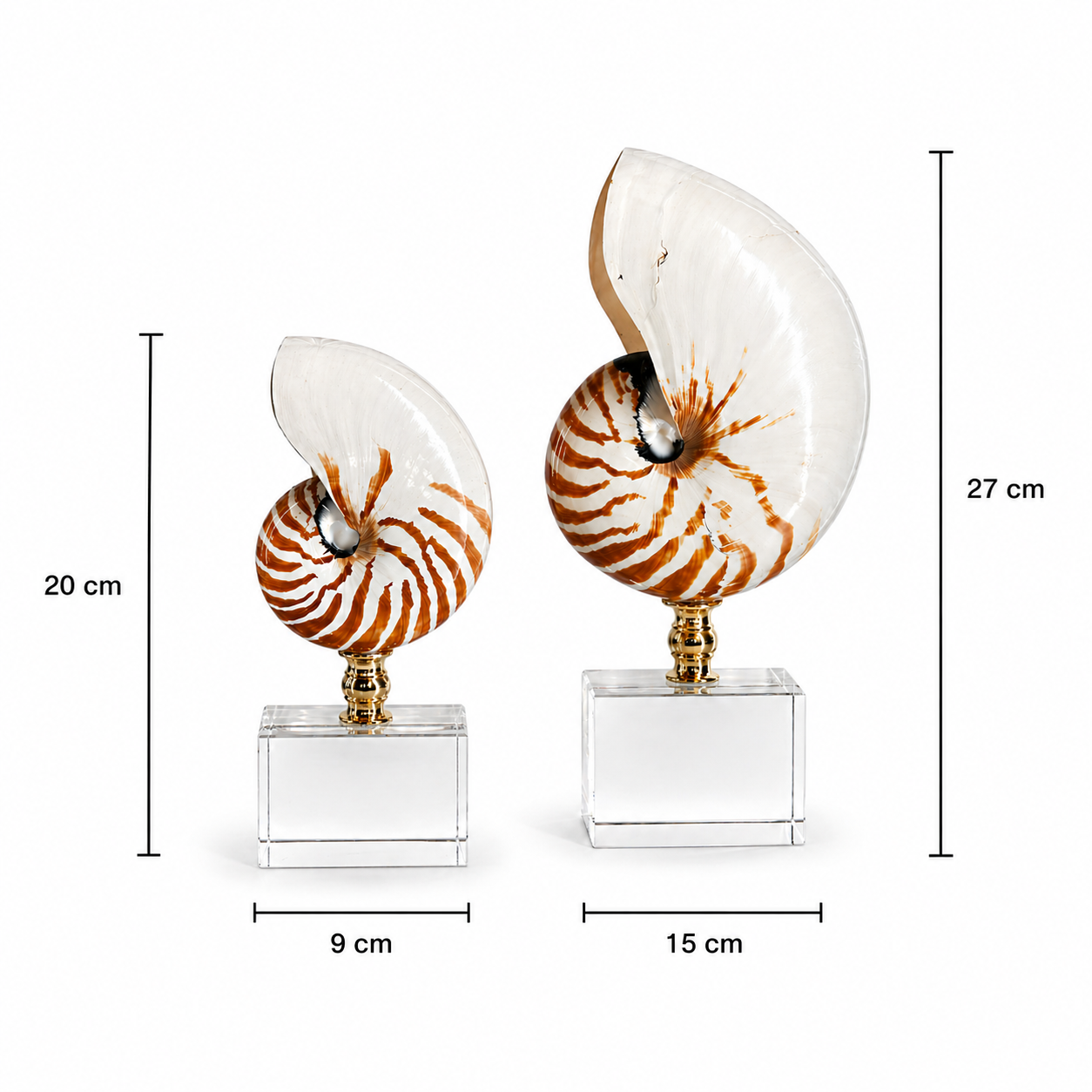 Doğadan ilham alan zarif formu ve modern detaylarıyla öne çıkan bu 2’li dekoratif doğal deniz kabuğu obje seti, yaşam alanlarına sofistike bir dokunuş kazandırır. Şeffaf kaide üzerinde yükselen özel tasarım kabuk formu, altın ton metal geçiş detayıyla birleşerek hem klasik hem modern dekorasyon tarzlarına uyum sağlar.