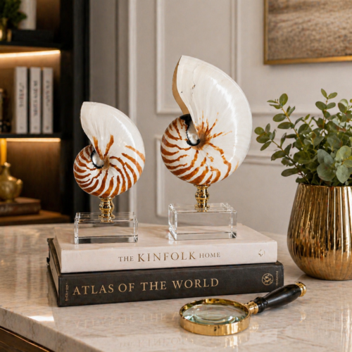 Dekoratif Deniz Kabuğu Obje Seti – 2’li Lüks Tasarım Aksesuar