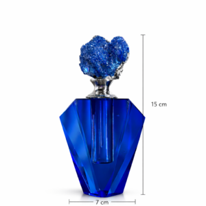 Şıklığı ve zarafeti bir araya getiren mavi dekoratif parfüm şişesi, göz alıcı tasarımı ile yaşam alanlarınıza lüks bir dokunuş kazandırır. Modern kesimli mavi cam gövdesi ve özel tasarım kapak detayı sayesinde salon, yatak odası, banyo, makyaj masası, konsol ve vitrin dekorasyonunda dikkat çekici bir aksesuar olarak öne çıkar.