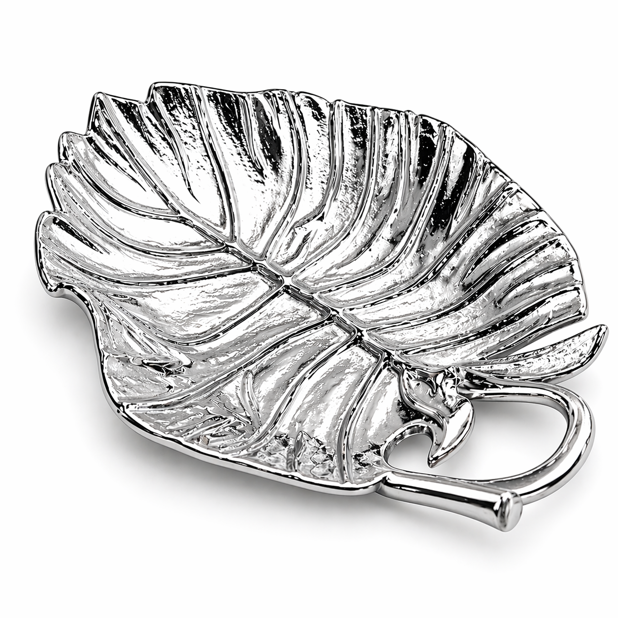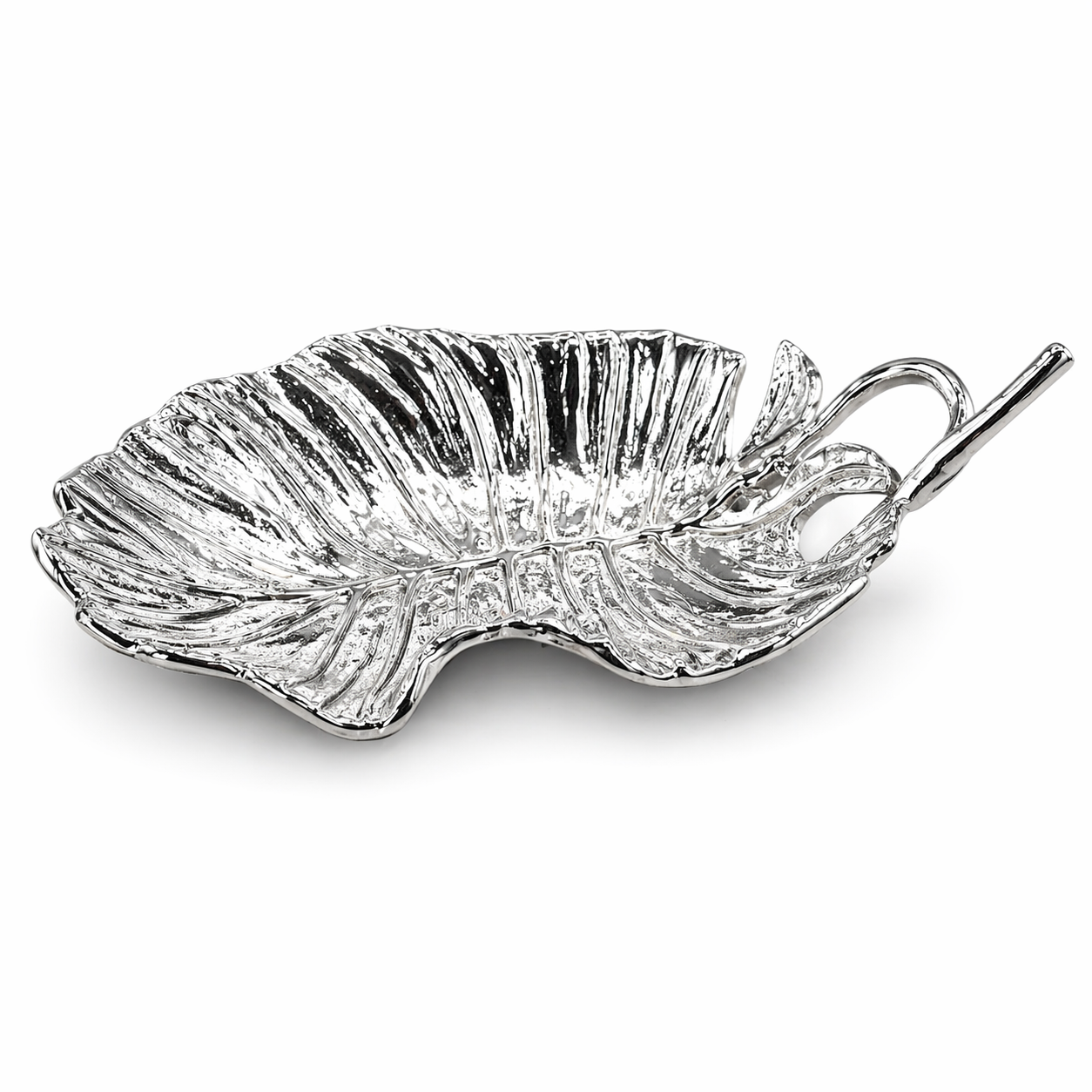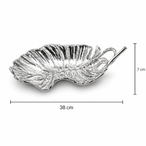 Zarif yaprak formu ve şık parlak yüzeyiyle dikkat çeken bu metal dekoratif tabak, yaşam alanlarınıza modern ve estetik bir dokunuş kazandırır. Doğadan ilham alan yaprak tasarımı, detaylı damar dokusu ve zarif kıvrımları sayesinde bulunduğu ortamda göz alıcı bir dekor objesi olarak öne çıkar.
