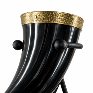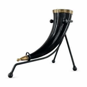 Modern tasarımı ve dikkat çekici formuyla öne çıkan metal standlı doğal boynuz obje, yaşam alanlarına karakter ve şıklık kazandıran özel bir dekoratif aksesuardır. Siyah gövdesi, altın detayları ve zarif metal standı sayesinde salon, oturma odası, ofis, antre, konsol, dresuar ve sehpa üzerinde estetik bir görünüm sunar. 32 cm genişliği ve 23 cm yüksekliği ile bulunduğu alanda güçlü bir dekor etkisi yaratır.