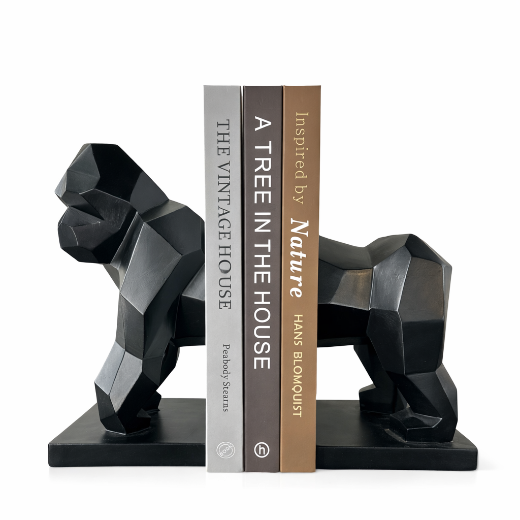 Goril figürlü kubik formdaki dekoratif kitap tutucu, modern ve İskandinav tarzı dekorasyonu bir araya getirerek raflarınıza güçlü ve dikkat çekici bir görünüm kazandırır. Minimalist çokgen (low-poly) tasarıma sahip ayı figürü, günümüz iç mimarisinde popüler olan Nordik, rustik ve modern dekorasyon trendleriyle mükemmel uyum sağlar.