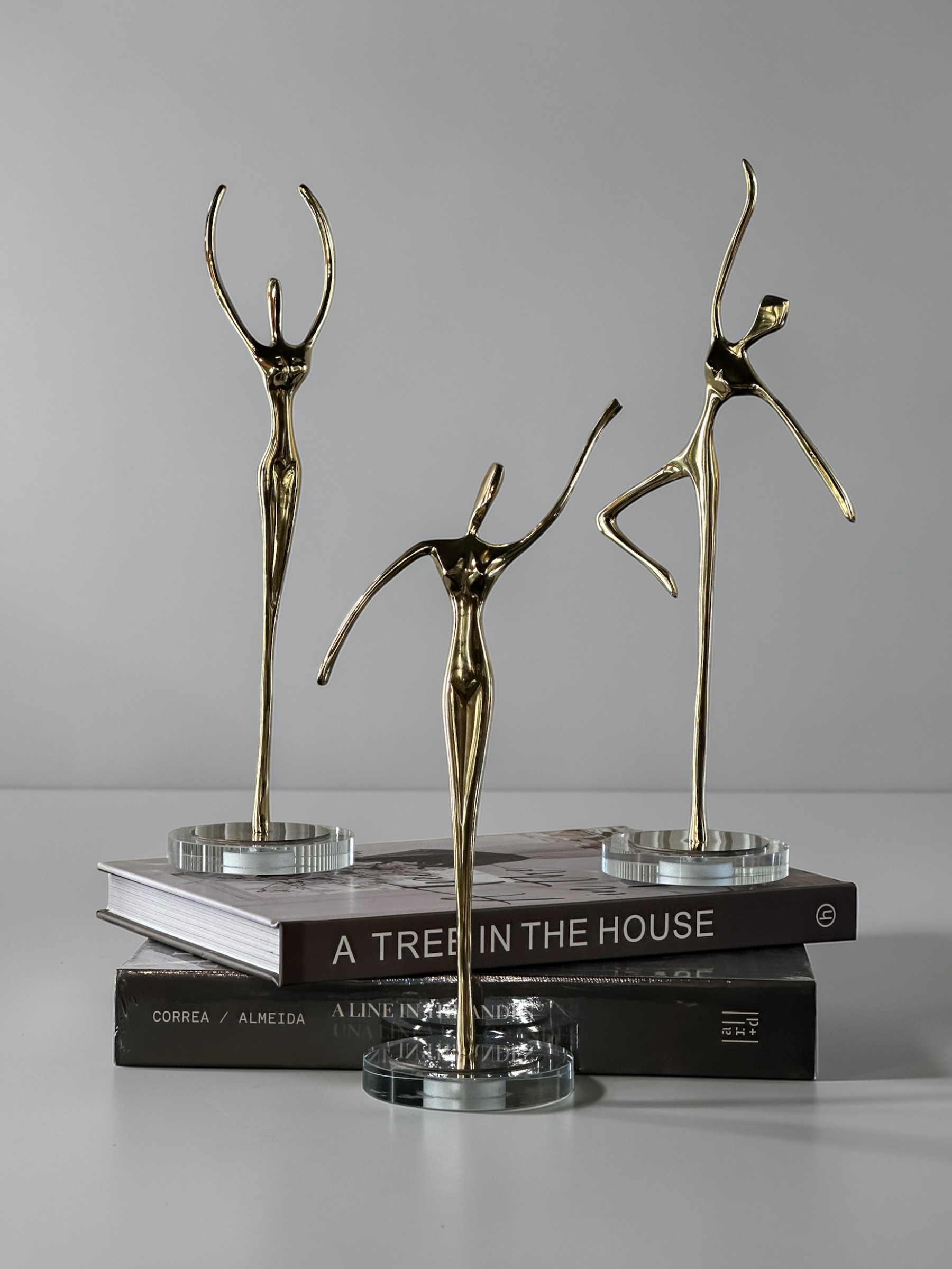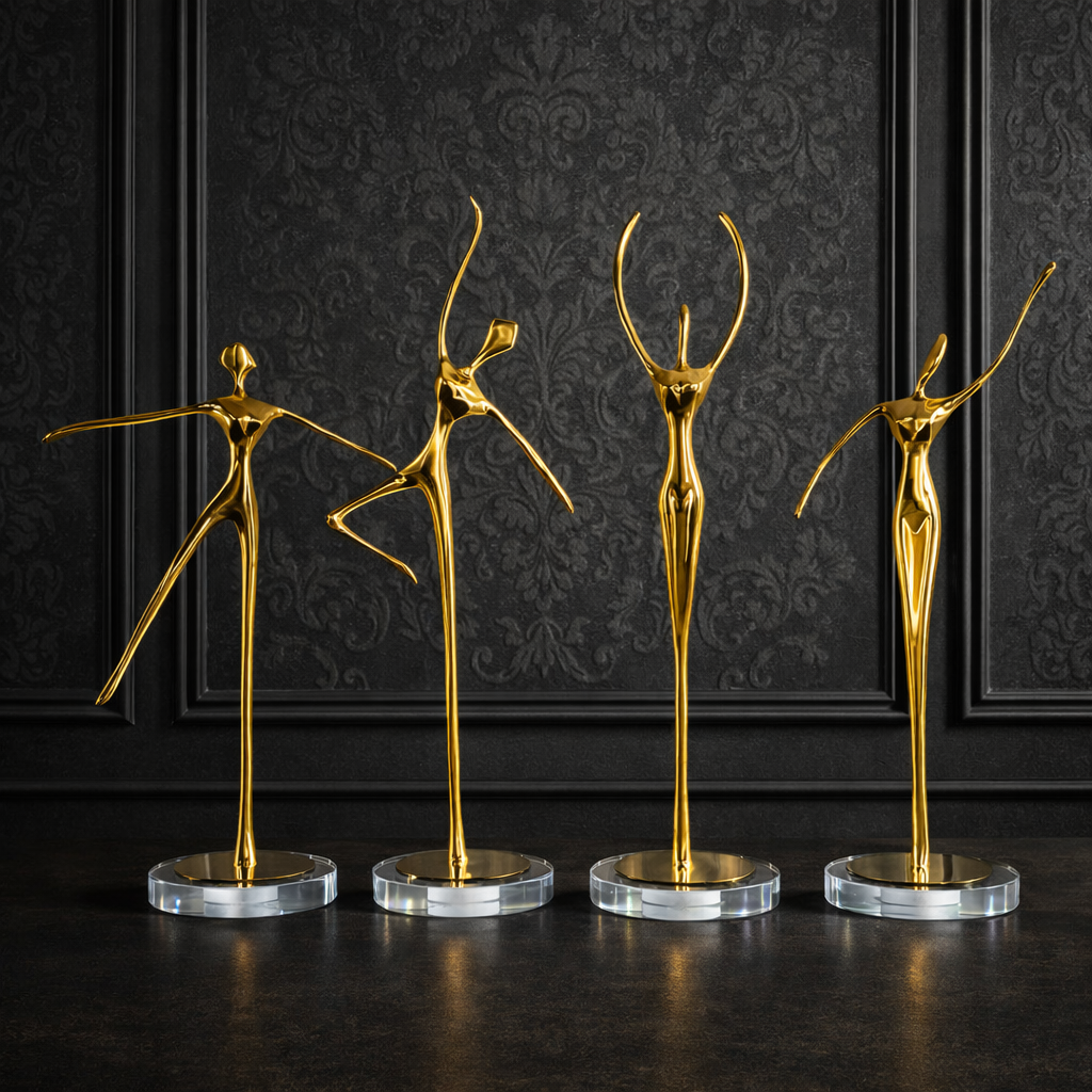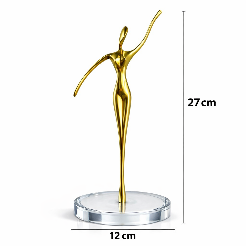 Heykelin uzatılmış vücut oranları ve dinamik duruşu, modern soyut heykel sanatından ilham alır. Açılmış kollar ve asimetrik bacak formu; dans, denge ve insan ifadesini simgeleyen güçlü bir görsel anlatı oluşturur. Bu sayede yalnızca bir dekor ürünü değil, aynı zamanda sanatsal bir hikâye taşıyan obje haline gelir.