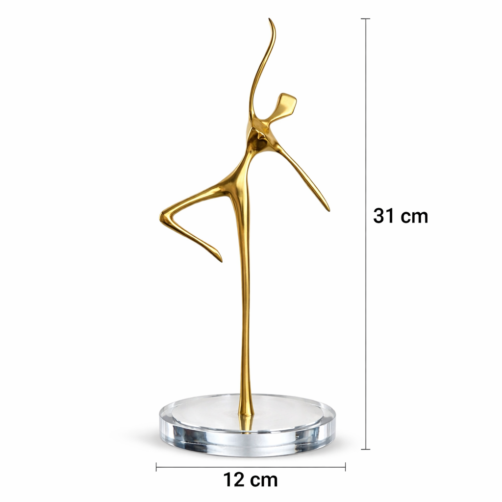 Heykelin uzatılmış vücut oranları ve dinamik duruşu, modern soyut heykel sanatından ilham alır. Açılmış kollar ve asimetrik bacak formu; dans, denge ve insan ifadesini simgeleyen güçlü bir görsel anlatı oluşturur. Bu sayede yalnızca bir dekor ürünü değil, aynı zamanda sanatsal bir hikâye taşıyan obje haline gelir.