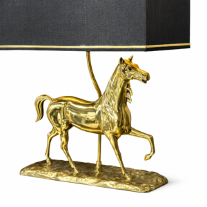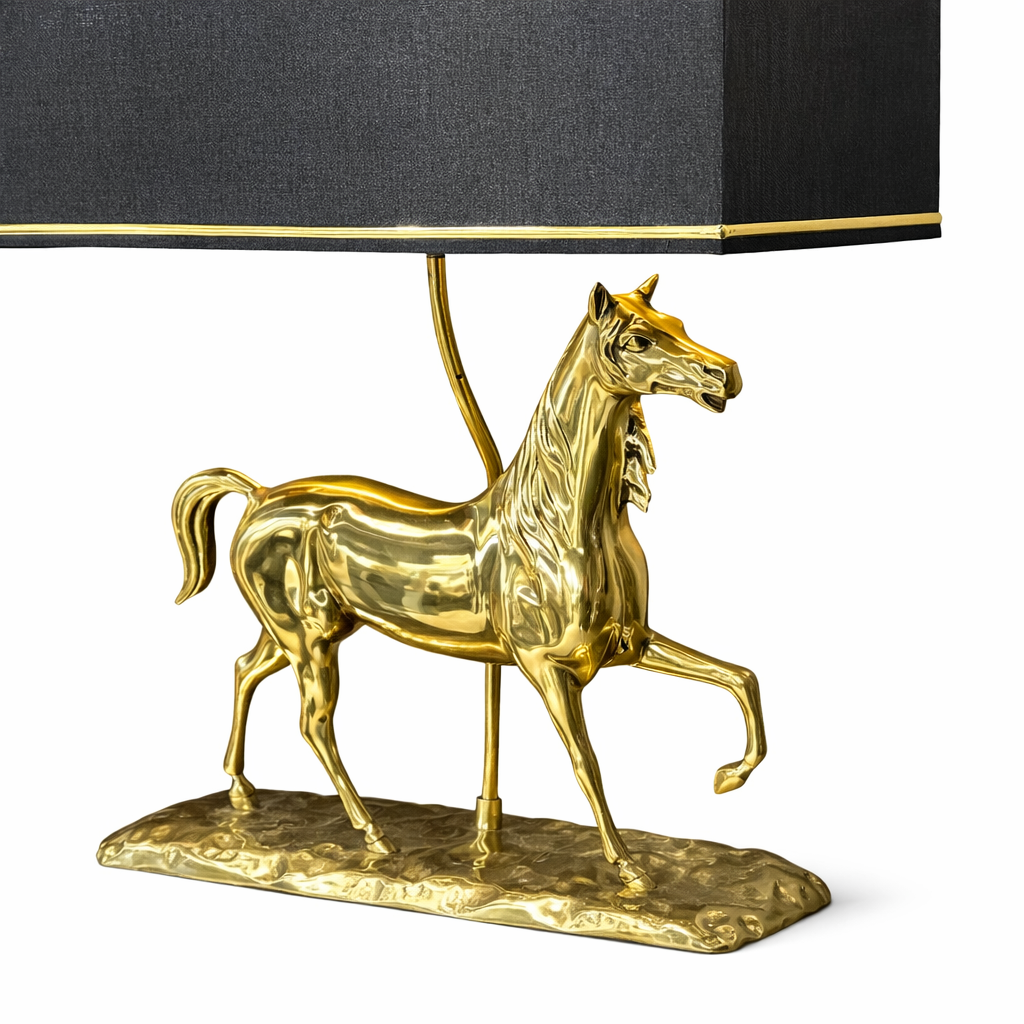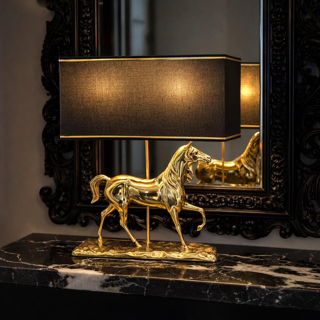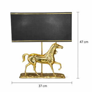 Zarafet, kalite ve işçiliği bir araya getiren bu saf pirinç döküm abajur, premium dekorasyon anlayışına hitap eden özel bir tasarım ürünüdür. Tamamen gerçek pirinç malzemeden üretilmiş olan bu şık masa lambası, gösterişli at figürü gövdesi ve modern siyah şapkasıyla yaşam alanlarına prestijli bir hava kazandırır. Salon, çalışma odası, yatak odası, ofis, otel ve özel dekorasyon alanlarında dikkat çekici bir odak noktası oluşturur.