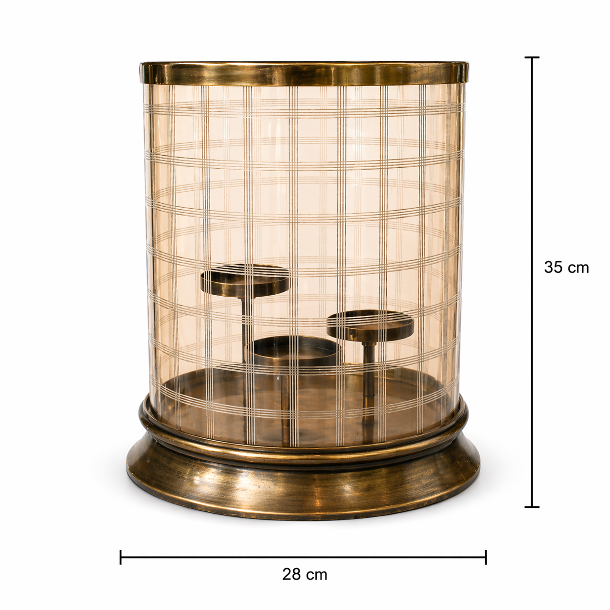 Zarif tasarımı ve şık detaylarıyla öne çıkan bronz renk cam şamdan, yaşam alanlarınıza sıcak ve lüks bir atmosfer kazandırır. Özel desenli cam gövdesi ve bronz renk metal kaidesi ile dekorasyonda dikkat çekici bir aksesuar olarak öne çıkar. Aynı anda 3 mum yakılabilen masa şamdanı tasarımı sayesinde bulunduğu ortama romantik ve etkileyici bir ambiyans sunar. Salon, yemek masası, konsol, sehpa, yatak odası ve özel davet sofralarında kullanıma uygundur.