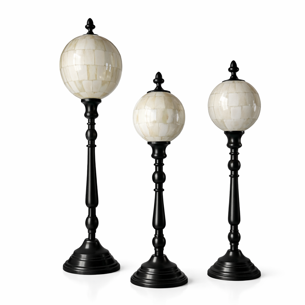 Modern ve klasik dekorasyonun mükemmel birleşimi olan Kemik Küre 3’lü Dekoratif Set, yaşam alanlarınıza sofistike bir dokunuş katmak için tasarlandı. Doğal kemik küre formu ile dikkat çeken bu özel set, zarif siyah ayak detaylarıyla güçlü bir kontrast oluşturarak bulunduğu ortama şıklık ve karakter kazandırır.