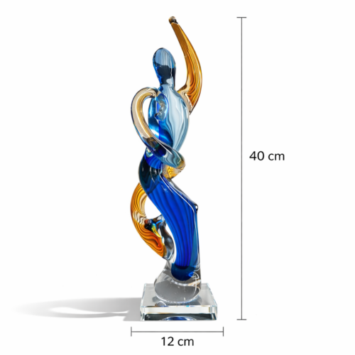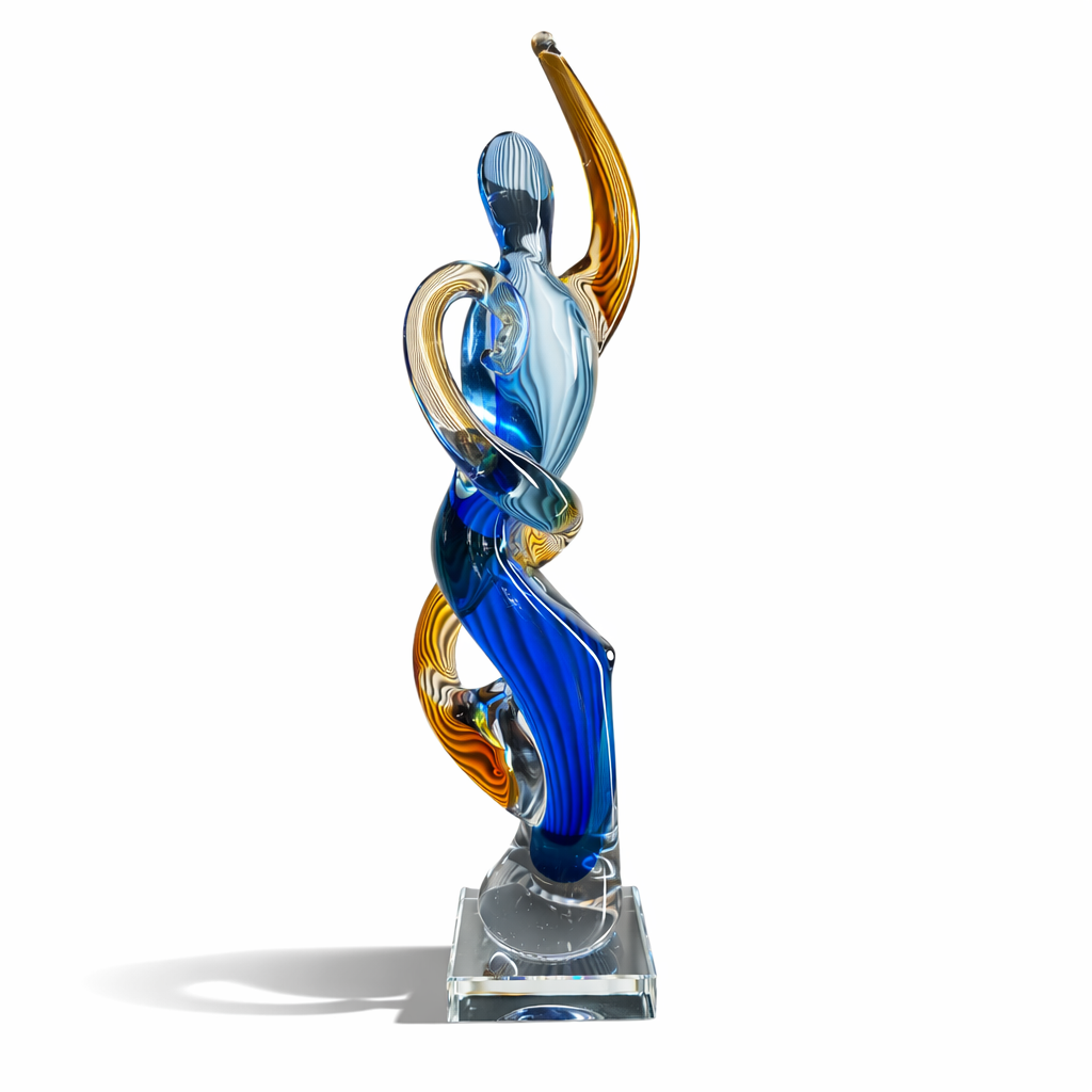 Yukarı doğru kıvrılan zarif formu koruyucu bir silueti andırırken, merkezdeki derin mavi ton odak noktası olarak dikkat çeker.