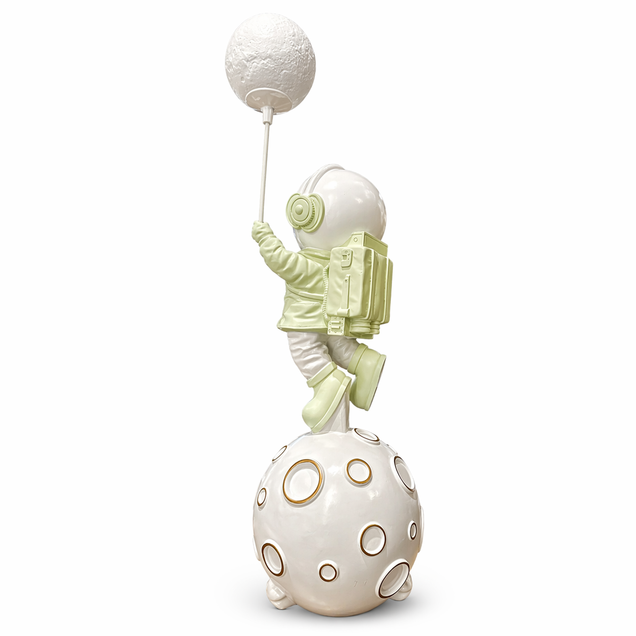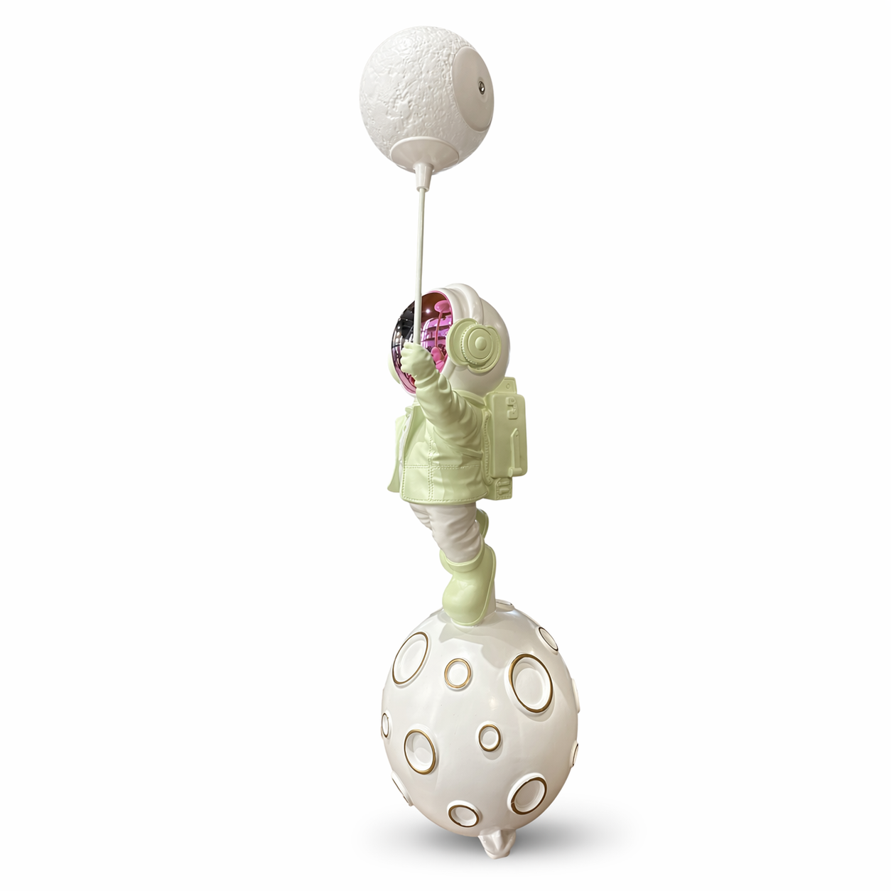 Detaylı işçiliği, parlak vizör tasarımı ve modern renk geçişleri ile salon, yatak odası, ofis, genç odası ve çalışma alanlarında göz alıcı bir tamamlayıcıdır. Pop art tarzını uzay temasıyla buluşturan bu özel heykel, dekorasyonuna farklılık katmak isteyenler için ideal seçimdir.
