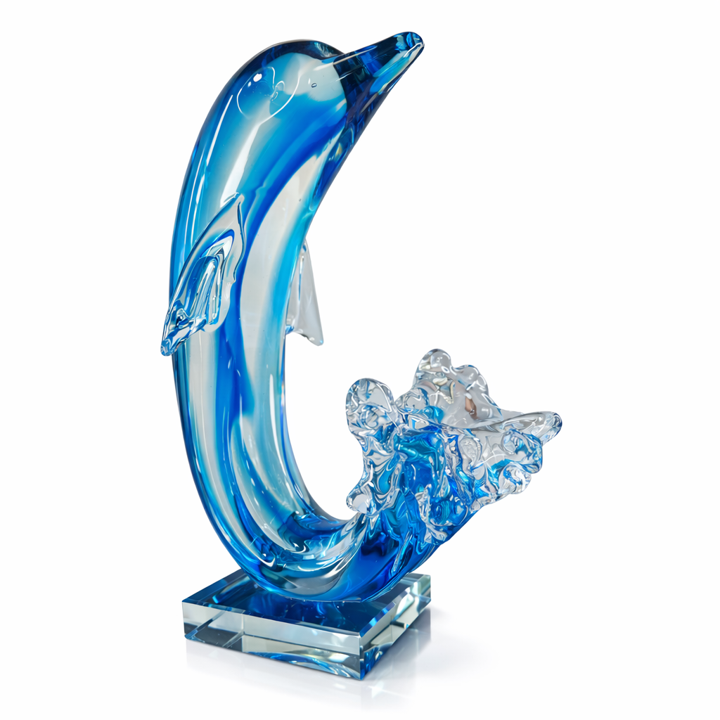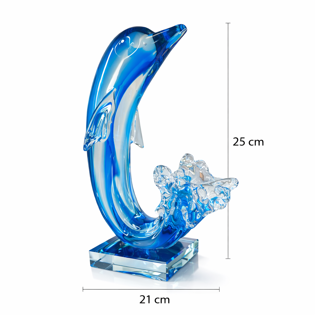 Okyanusun özgür ruhundan ilham alan Pelagio, cam sanatının akışkan estetiğini modern tasarım anlayışıyla buluşturur. Dinamik yunus formu, derin mavi tonların ışıkla birleşmesiyle hareket hissi yaratırken bulunduğu mekâna zarif bir enerji katar.